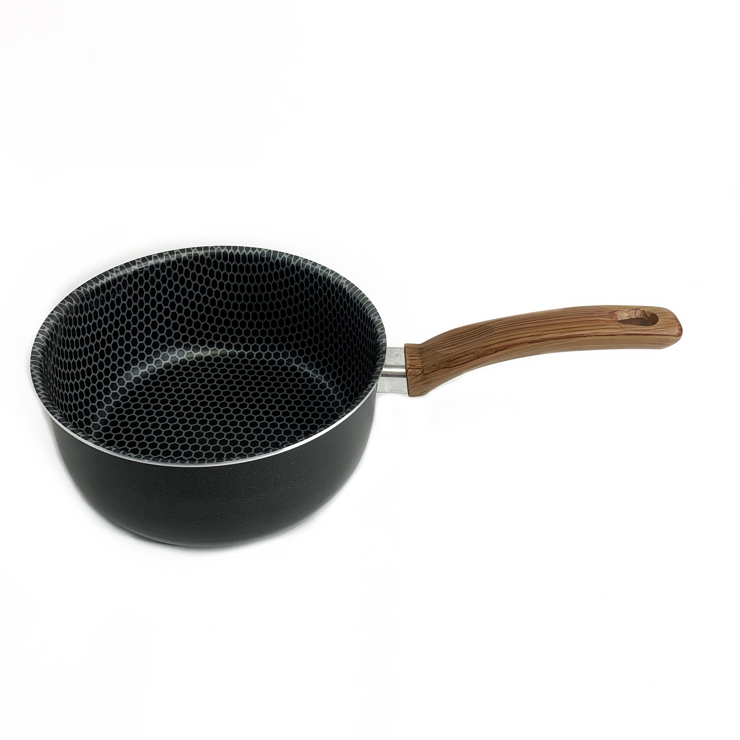 - Mango de baquelita con acabado tipo madera